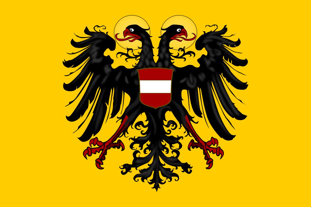 Vlajka Habsburské monarchie se znakem Rakouska uprostřed
