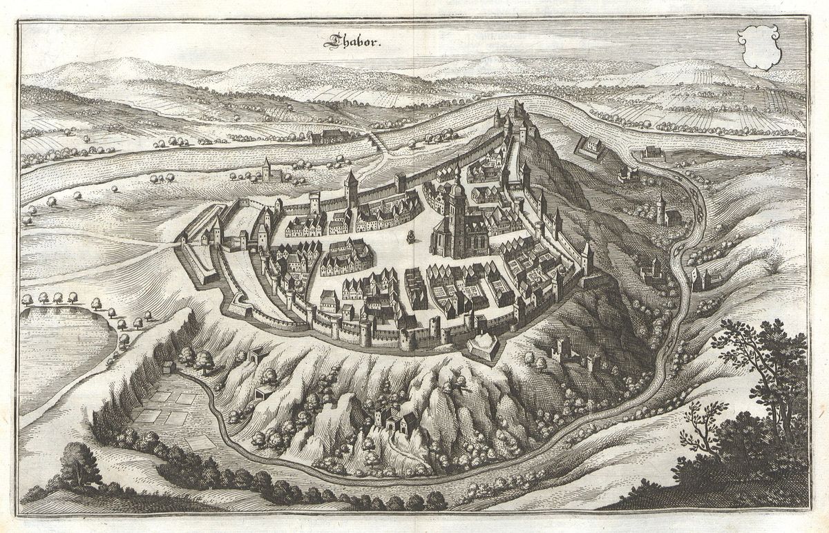 Město Tábor vzniklo z husitského vojenského tábora, zde na vyobrazení ze 17. století