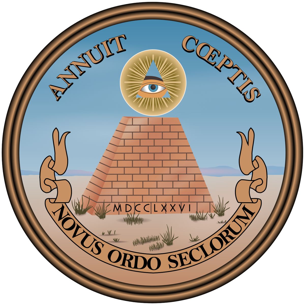 Text z Vergiliovy Eklogy IV na rubu Velké pečeti Spojených států. Novus Ordo Seclorum – Nový řád věků. Bukolika IV, 4: Velká řada století nyní poteče znovu. Nahoře text z Aeneidy: „Annuit Coeptis“ – (Bůh) je nakloněn (našemu) podniku. Aeneida IX, 625: Ó všemohoucí Jupitere, dej nám štěstí, ó všemohoucí Jupitere, pro naše odvážné plány.