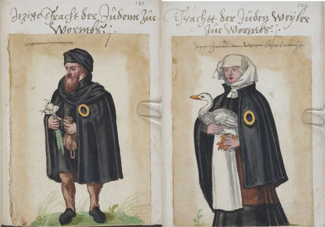 Židé byli vyčleněni ze společnosti po celou dobu své historie, zde označení, které museli nosit v 16. století v německém Wormsu