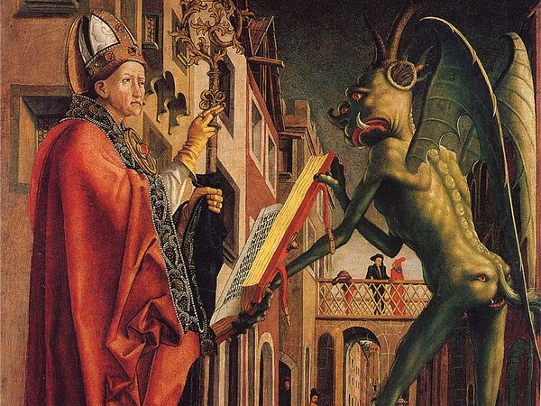 Ježíš vyhání démona, ten je fyzickou entitou vycházející z mužových úst, z kodexu z 11. století