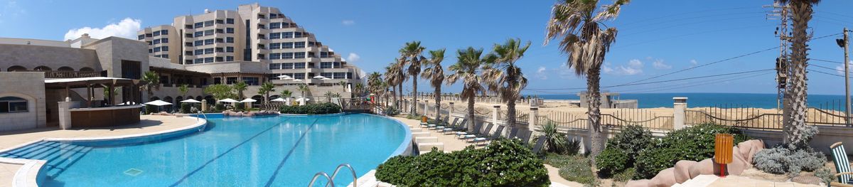 Jeden z turistických rezortů v Gaze před vypuknutím války. Trump se chtěl výrokem o tom, že tam udělá turistickou zónu, jen zviditelnit. Ta už tam byla