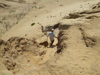 Chodidla a prsty sochy ze směsi hlíny a železa