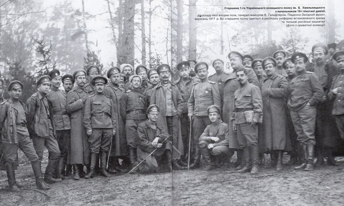 Současně s politickým vývojem se mezi důstojníky kyjevské posádky objevila i myšlenka na vytvoření samostatných ukrajinských ozbrojených jednotek. Vojáci ukrajinské národnosti cítili potřebu odlišit se od ruského velení a dát své národní emancipaci i vojenský výraz. Dne 29. března 1917 se proto v Kyjevě konalo ustavující shromáždění, na němž byl založen Ukrajinský vojenský klub jménem hetmana Pavla Polubotka. Z jeho iniciativy padl návrh na vytvoření prvního ukrajinského dobrovolnického pluku, který by nesl jméno Bohdana Chmelnického – symbolu ukrajinské státnosti a národní hrdosti.