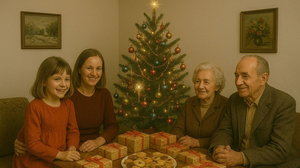 Z dnešního pohledu by byly ty Vánoce nuzné. Strašně nuzné. Ale já byla tak šťastná. Vybalovali jsme si dárečky. Nová spodní košilka a pletené kamaše s copem po straně, babičce zástěra a pánvička, mamince taška a silonky, dědečkovi sada kapesníků a košile.