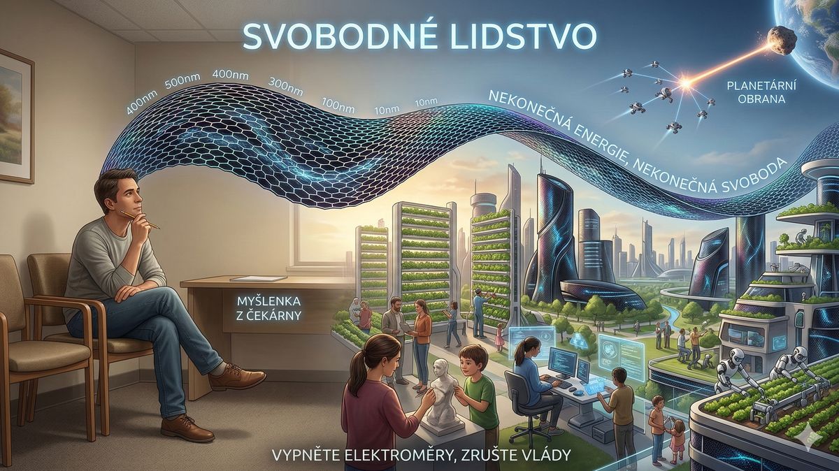 Ale každá velká změna v historii lidstva – od ovládnutí ohně po rozbití atomu – začala přesně takhle. Myšlenkou, že svět nemusí fungovat tak, jak nám tvrdí. My máme schopnost planetu uzdravit. Máme možnost zbavit se strachu. Jediné, co nás drží zpátky, je náš vlastní stín a systémy, které jsme sami vytvořili. Až jednoho dne někdo tu nanomřížku skutečně vytvoří, pamatujte si: budoucnost nepotřebuje politiky. Budoucnost potřebuje lidi, kteří se nebojí být svobodní.