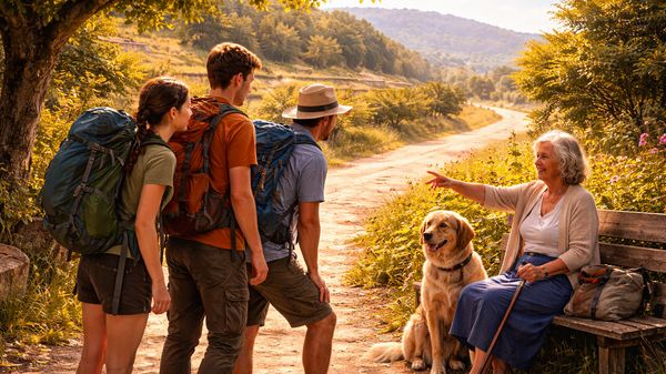„Buen Camino, peregrinos. ¿A dónde vais?“