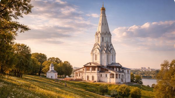 Jsou stavby, které nevznikly proto, aby ohromovaly množstvím zlata nebo velikostí prostoru, ale aby vyjádřily myšlenku. Chrám Nanebevstoupení Páně v Kolomenském je jednou z nich. Stojí vysoko nad břehem řeky Moskvy, štíhlý a tichý, jako by byl spíše gestem než budovou. Symbol okamžiku, kdy se architektura rozhodla mluvit novým jazykem.