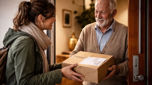 „To je poprvé, co mi někdo přinesl balík osobně,“ pousmál se. „Většinou mi jen hodí lístek do schránky.“