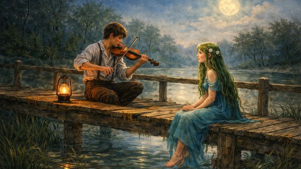 V kraji tichých rybníků a vrbových hájů stála stará dřevěná lávka. Pamětníci říkali, že ji postavili pradědové pradědů, když řeka ještě zpívala hlasitěji než lidé. Po nocích na ní sedával mladý houslista Jakub a hrál teskné melodie tak hluboké, že i voda zpomalovala, aby jej vyslechla.