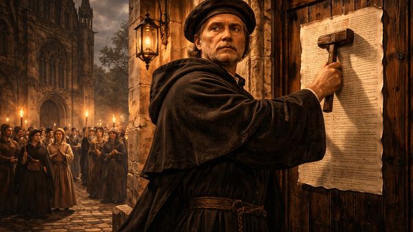 Dne 31. října 1517 zveřejnil svých 95 tezí, které kritizovaly především praxi prodeje odpustků. Tradice říká, že je přibil na dveře kostela ve Wittenbergu. Možná kladivem. Možná jen symbolicky. Jisté je jediné, jejich ozvěna se Evropou šířila rychleji než jakákoli armáda.