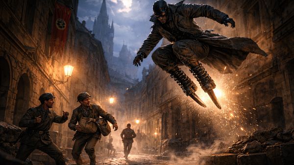 Jenže ten kluk plakal dál a něco se v Frantovi zlomilo. Ne hlasitě, ne dramaticky. Jen tak tiše, jako když povolí starý uzel. Na nohou měl to, co si poslední měsíce doma za kuchyní poskládal. Staré pružiny z postele, kousky kůže, železné pásky z bedýnek. Ne proto, že by snil o hrdinství. Jen pro jistotu. Kdyby někdy musel utéct rychleji, než stačí normální nohy.