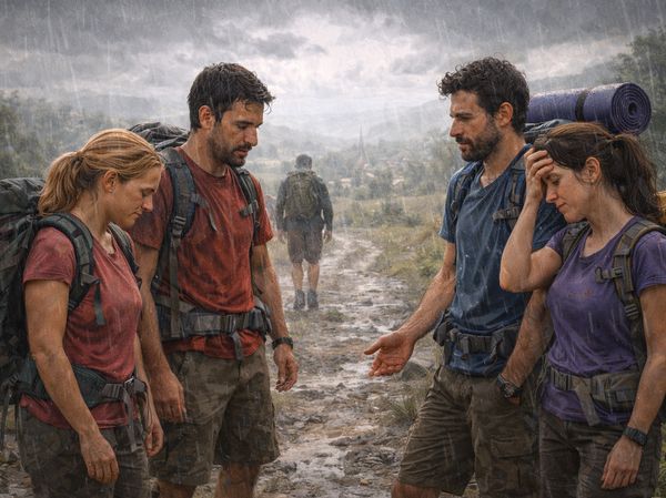 Rychle jsme se na sebe podívali. On trochu zadýchaný, v kabátu, který už něco pamatoval. Já s mokrými vlasy a náladou, která by se dala prodat maximálně ve slevě.