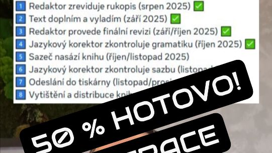 - Sazba knihy (říjen/listopad 2025) – probíhá u sazeče.