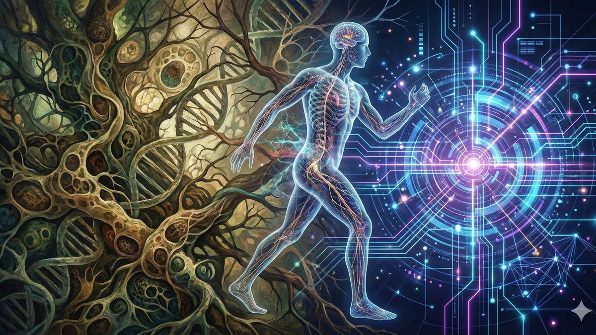- jejichž existence je druhu vědomá – při současné perzistenci implicitních dynamik a možnosti kolapsu zpět k 𝓢_bio.