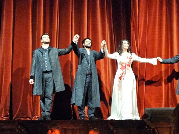 Inscenace je vizuálně úžasná – škoda že diváci nemohou fotit. Jsem si jistý, že to na záznamu (video, foto) bude vypadat naprosto dokonale. Když se přidá slušný zvukař, bude to video-podívaná par excellence i s (asi) skvělým zpěvem. Inscenace určitě i vyhraje nějakou cenu, ale divadlo nemá žít kdesi na Youtube nebo fotkách. Divadlo má žít na jevišti. A k tomu bylo zatraceně daleko tři jednání ze čtyř. A ty čtyři jednání, to je celkem sedm scén, a každá by mohla být jiná… to bych teprve byl oslněn.