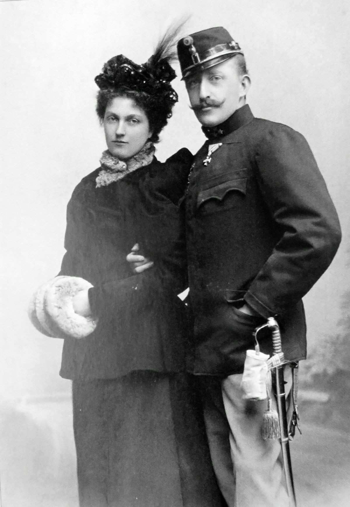 Otto František Josef (1865 - 1906) alias „krásný Otto“ na svatebním snímku s Marií Josefou Saskou (1867 - 1944). Manželství šťastné nebylo; Otto dával přednost mnoha jiným ženám.
