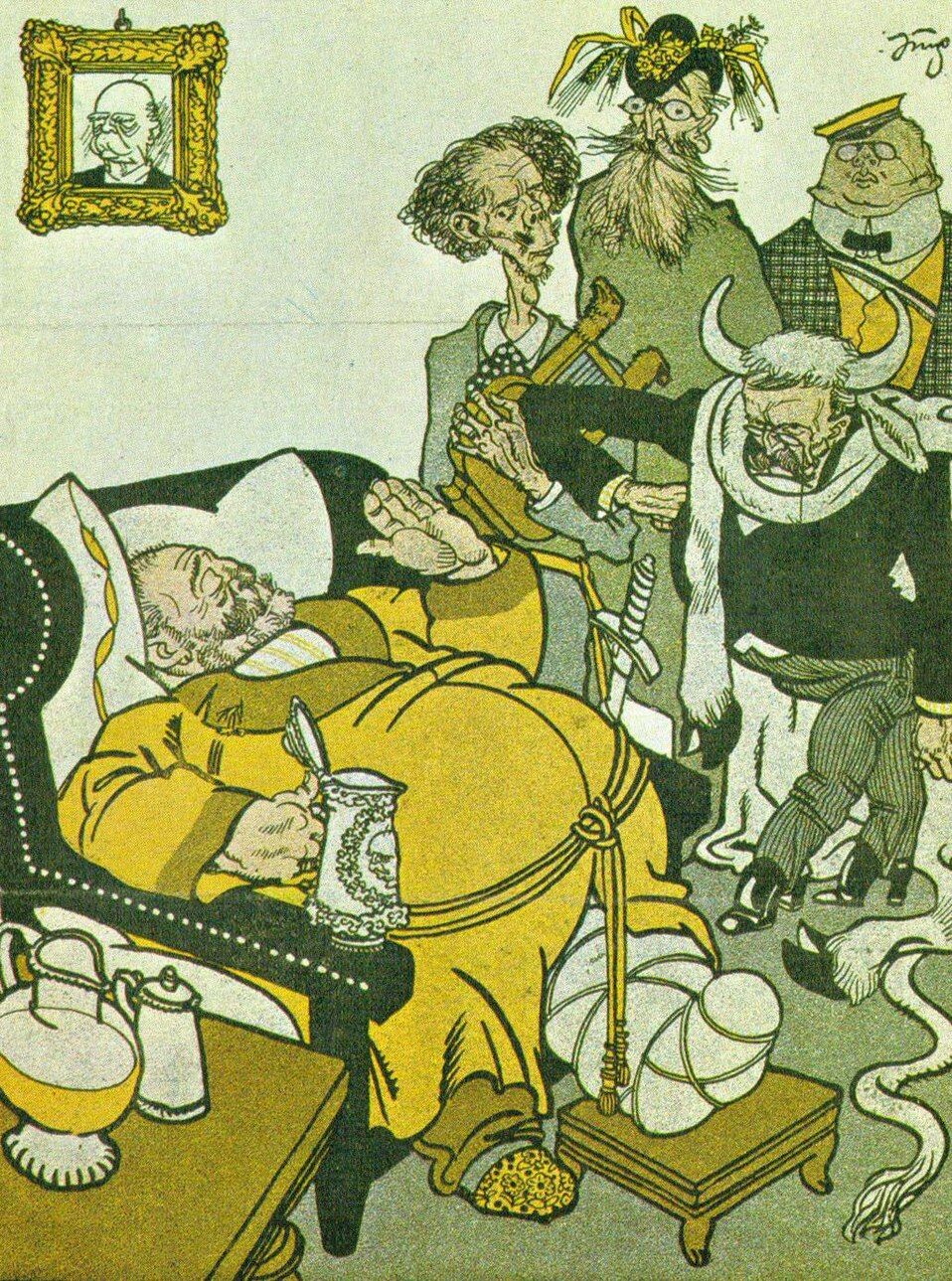 „Naši všeněmci u starého Schönerera,“ dobová karikatura
