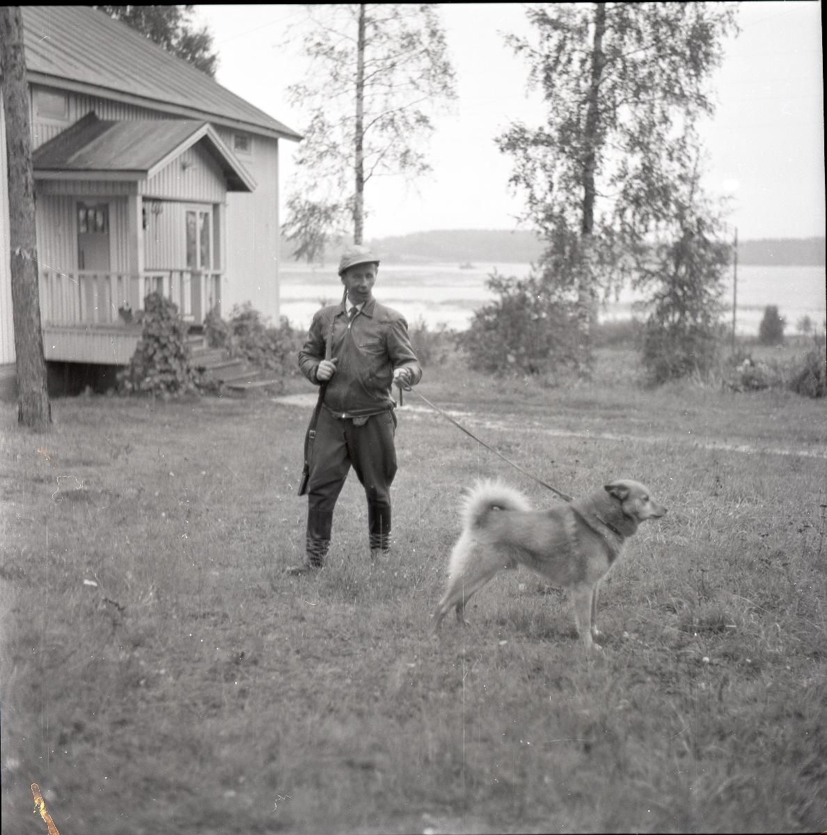 Simo Häyhä na fotografii z roku 1961 během poválečného života jako zemědělec, lovec a chovatel psů.