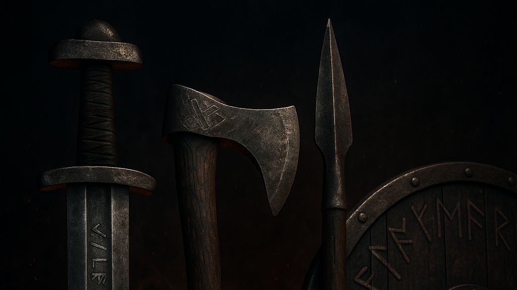 Vikingové svým zbraním dávali jména – „Rozparovač nohou“, „Krvavá sekera“, „Hadí jazyk“. Nebyl to rozmar, ale projev úcty. Zbraň byla druh bytosti, společník v bitvě i tichý svědek. Na štítech se malovaly příběhy, skaldové psali básně, v nichž ocel mluvila vlastním hlasem. Zbraň definovala postavení muže. Nosit ji nebyla póza – bylo to právo svobodného.