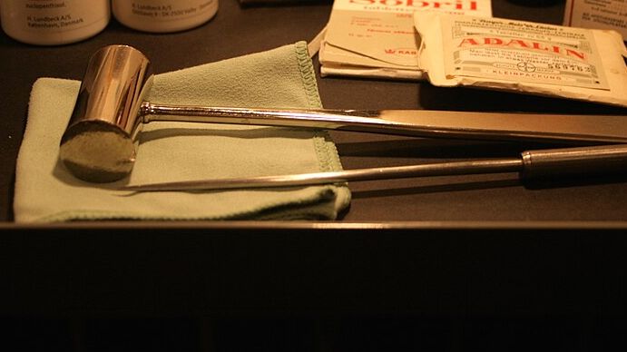 Souprava chirurgických nástrojů používaných při lobotomii Waltera Jacksona Freemana.
