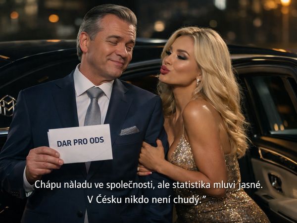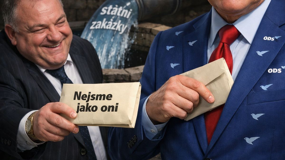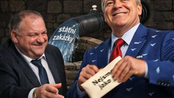 Dárce obálky poplácal pána v saku se znaky ODS po zádech a říká: