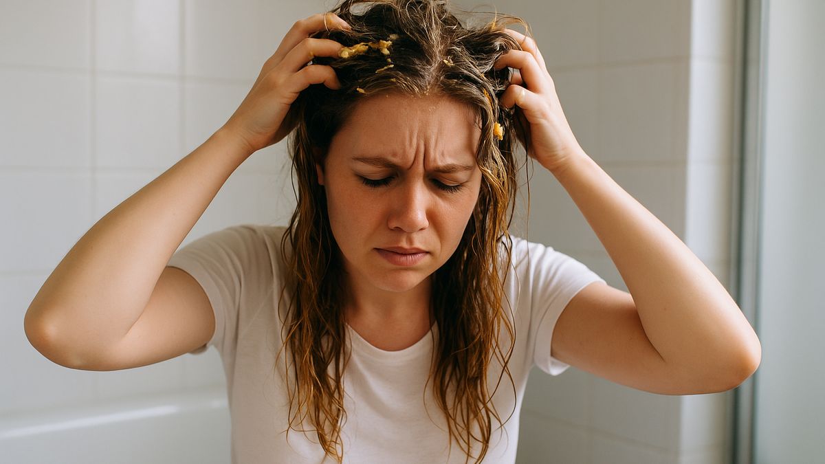 Na první pohled to vypadalo neškodně. Jenže když jsem vešla do sprchy a pustila teplou vodu, směs se proměnila v podivné hrudky. Začala jsem je vytahovat po pramíncích. Koupelna ztichla, jen voda šuměla a já jsem opatrně rozčesávala to, co připomínalo sraženou omeletu.