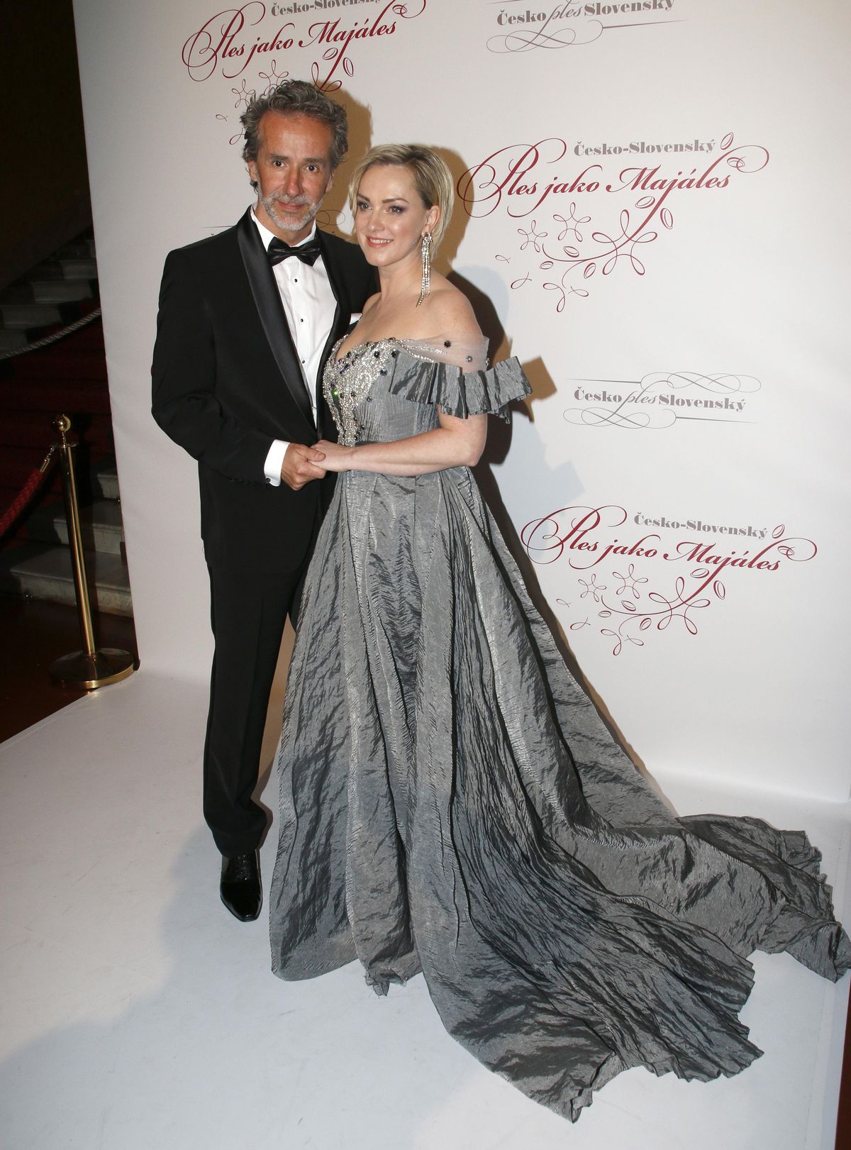 Monika Hilmerová s manželem na Česko-Slovenském plese v Obecním domě