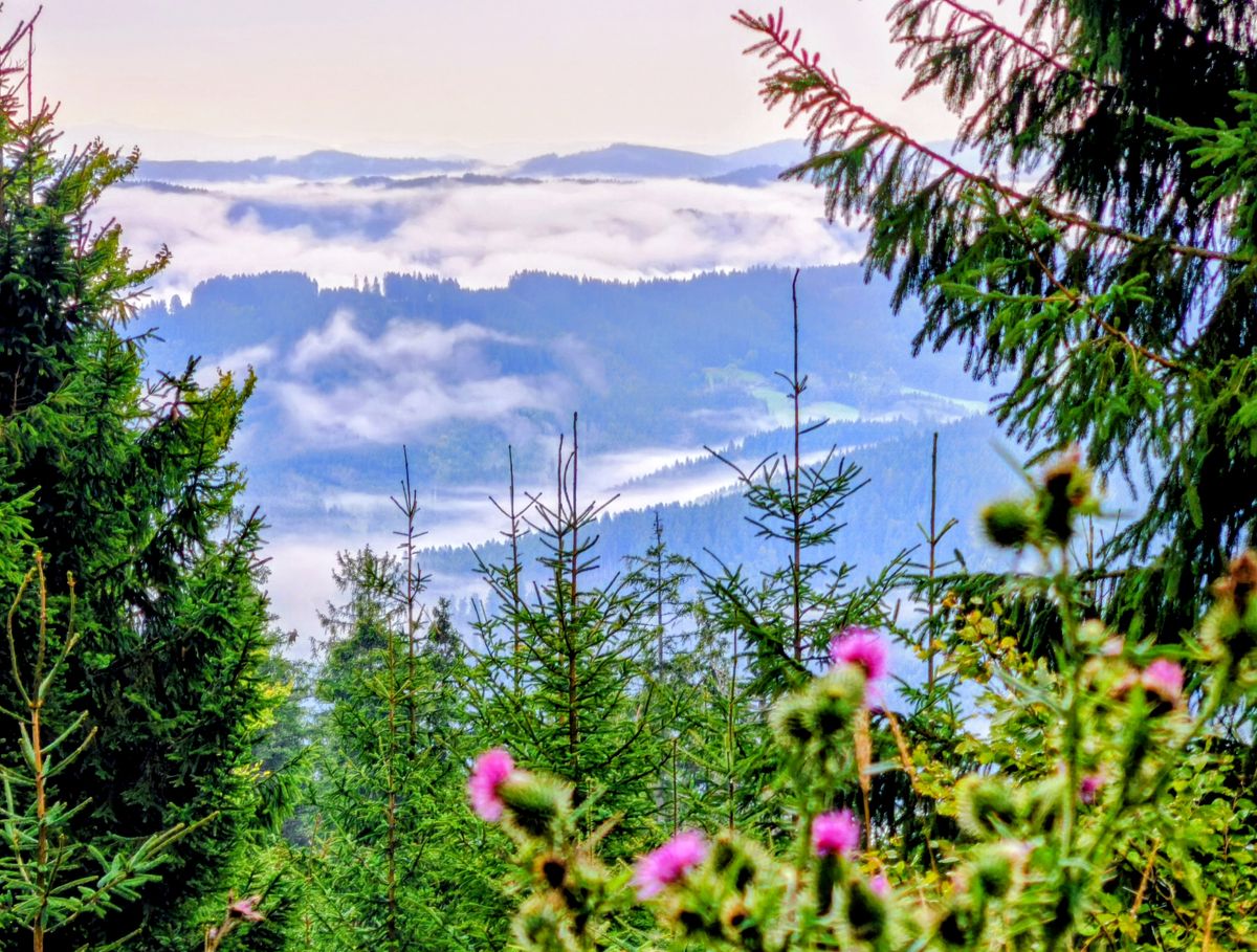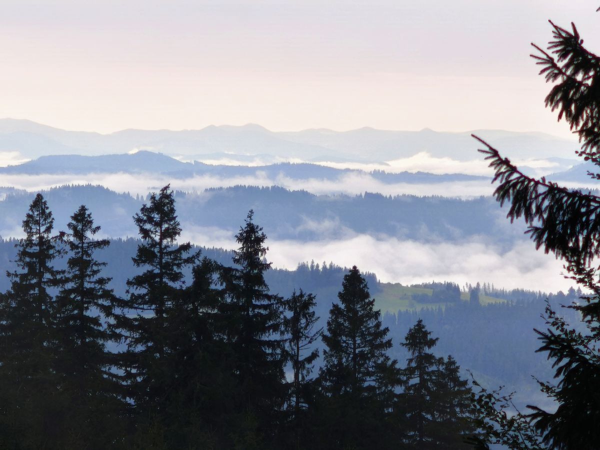 Mlha se prolíná a pořád stoupá. To jsme v takové síle ještě na Stezce Českem nezažili. Beskydy. Tiché, klidné, vznešené. Jak se mlha postupně uvolňuje, pokrývá čepičky kopců bílými korunkami. Příroda se tváří, jako by chtěla provětrat peřinky a sluníčko je pomalu vytahuje nahoru.