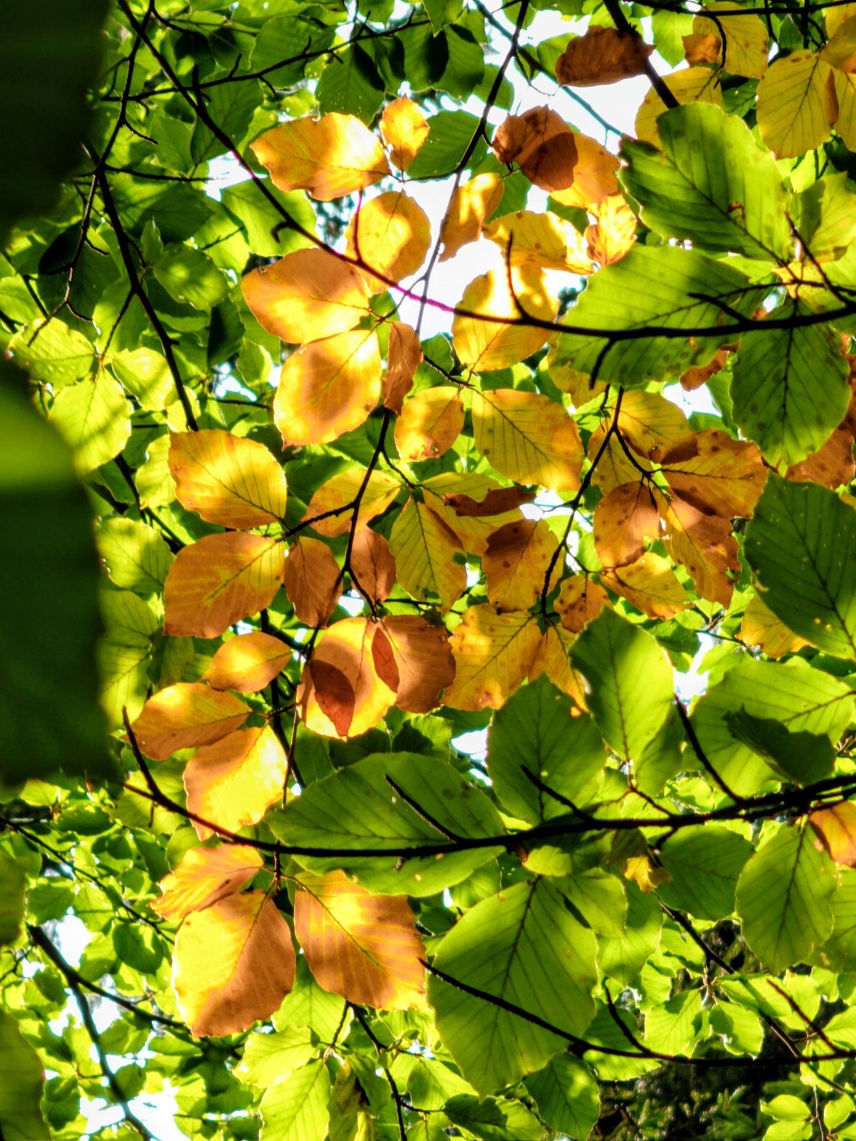 Sluníčko prolomilo šedé mraky a dovádivě nás hladí. Úbočí svahu se zalesklo zelení, sluncem prosvícené lístečky září.