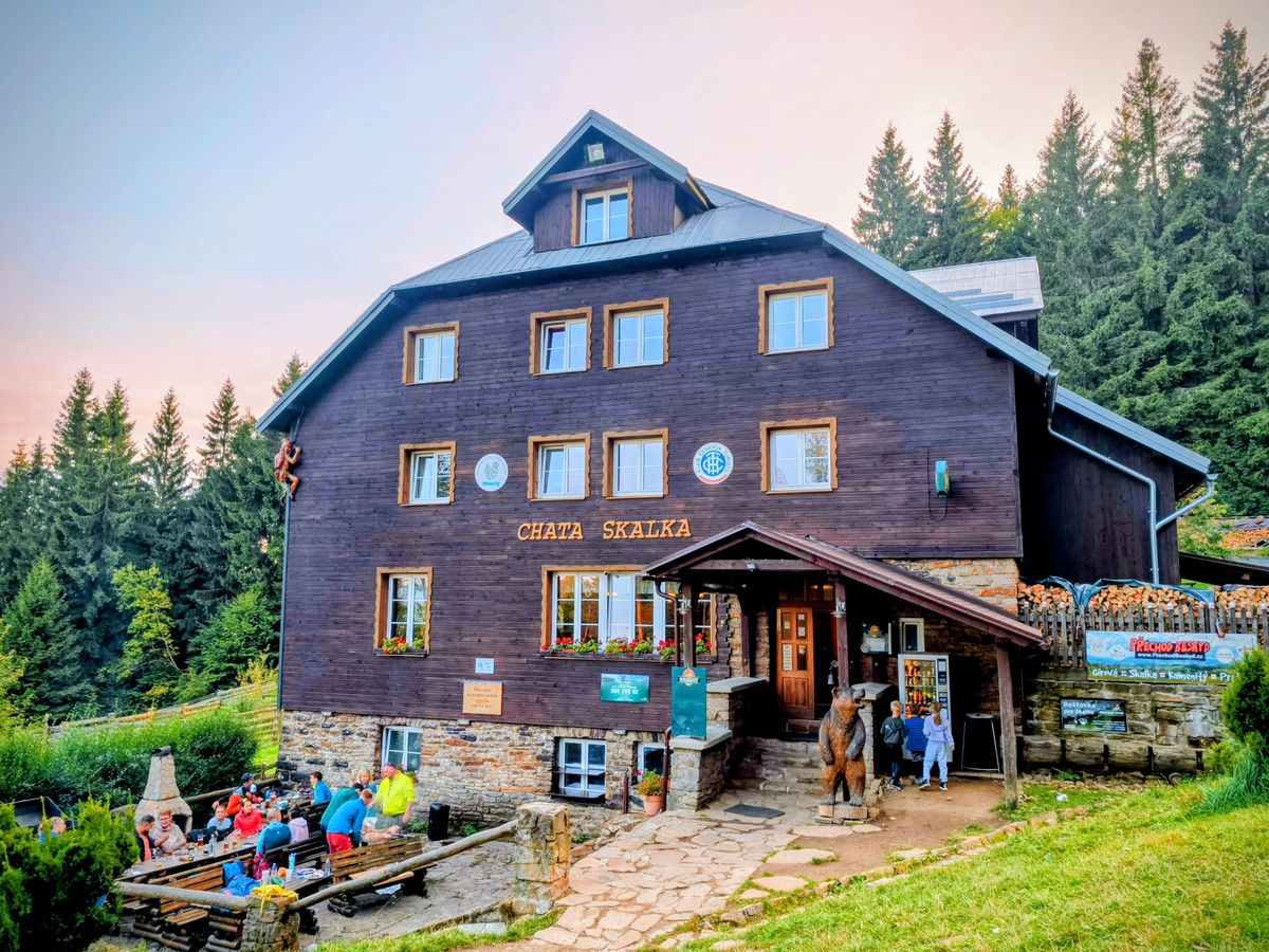 Čekají nás poslední necelé dva kilometry s nádhernými výhledy kolem dokola. Krásné zakončení dne a to netušíme, že radost bude trvat až do rána. Bohužel ne naše ale mládí, které se sešlo na chatě Skalka, kde opékají selátko a veselí se asi do čtyř do rána. Ale bereme to, my jsme spokojeni. Teplá večeře, pivko a opět parta Velmez, se kterou se potkáváme už od včerejška.