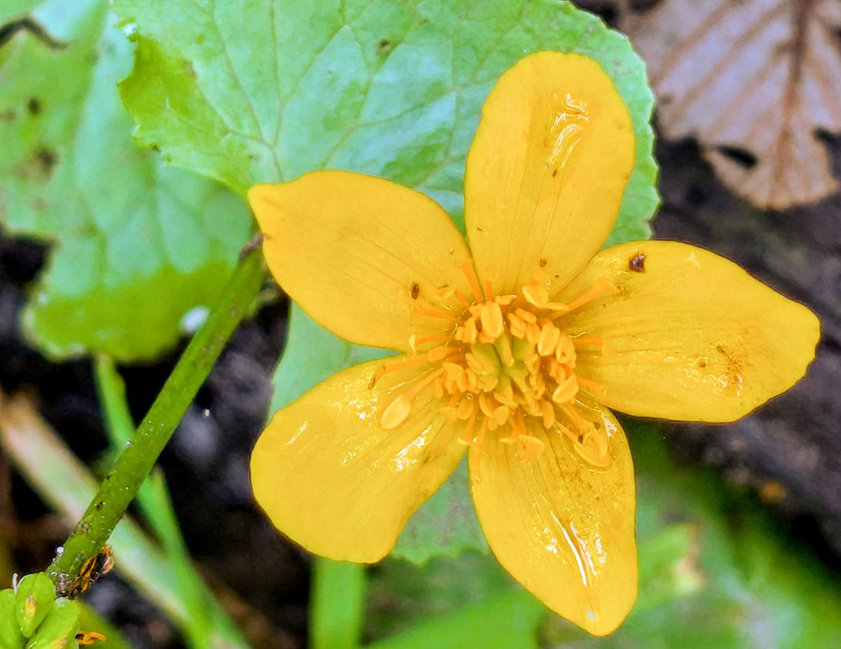 Skrz blátivky a dlouhé bahenatky přicházíme zase na česko-slovenskou hranici. Ve vlhké půdě se daří blatouchu. Kocháme se žlutými kytičkami.