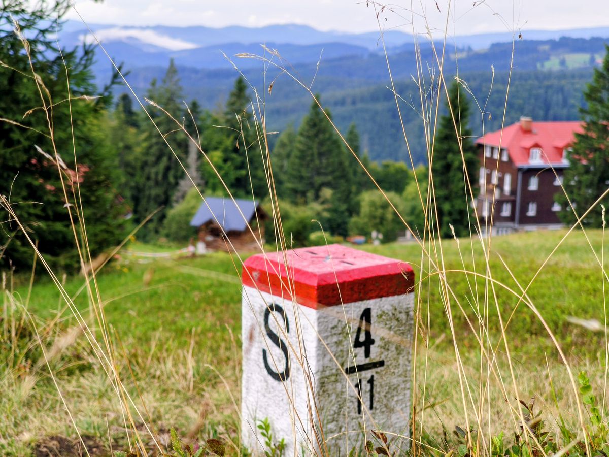 Na cestě objevujeme historické hraniční kameny, rozcestníky Stezky Českem i cedule „Stezky z lásky.“