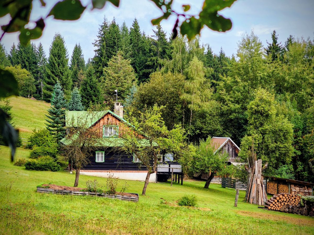Scházíme osamoceni mezi obrovskými lukami okolo dřevěné chaloupky a mám pocit, že se propadám do pohádky. Rozhlížím se, odkud vyběhne uhlíř a začne s dětmi tancovat okolo milíře. Je tu opravdu kouzelně. A možná, že tu nakonec objevíme i ty ovečky. Přicházíme na pastviny.