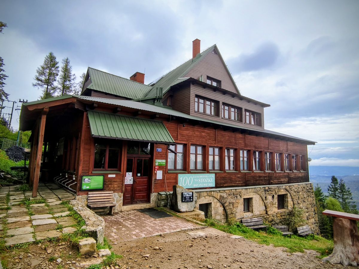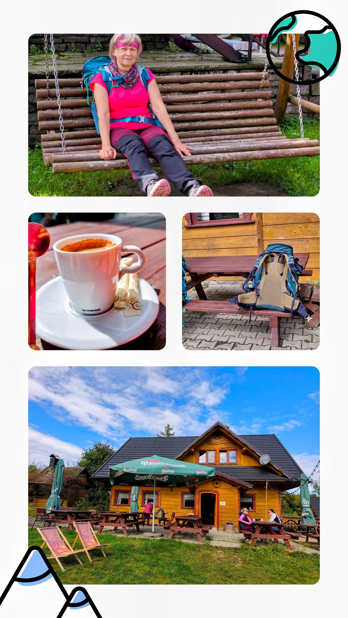 Přicházíme k nádherné restauraci Lepiarzówka vyjímající se na malebném úbočí Soszowa Wielkiego s úžasným posezením i výhledy, bohatě rozkvetlými muškáty, lehátky, houpačkou. Sešlo se nás tu více mlsných jazýčků, ale bohužel v pondělí mají zavřeno. Pokračujeme dál přes bike park Soszów. Sněhová děla odpočívají, ale nikoliv příjemné občerstvení. Poláci si potrpí na krásné vyšperkované roubenky. Posedíme, pokocháme se, pohoupeme, osvěžíme kafíčkem.