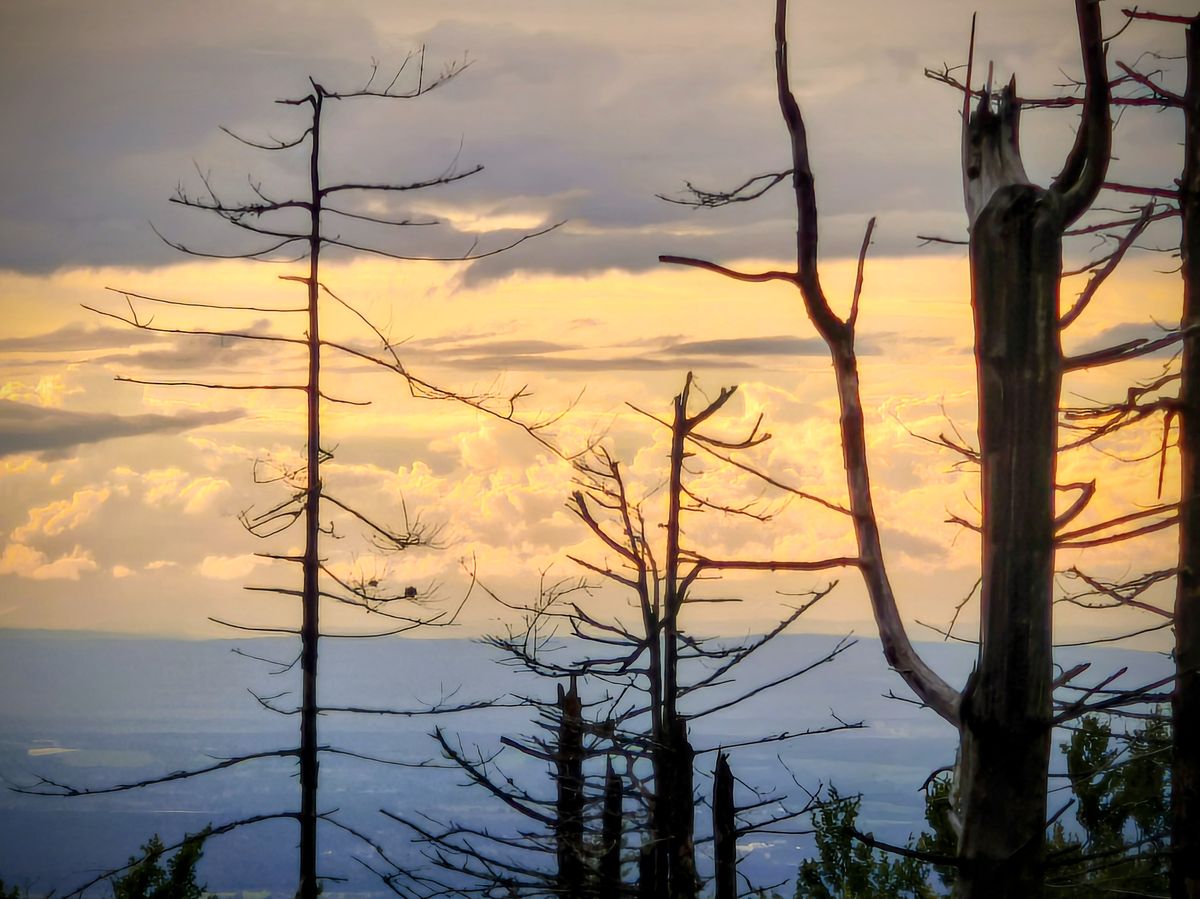 Nebe hraje všemi barvami, ale kdybychom si zahráli Čáp ztratil čepičku, jakou měla barvičku? a řekli byste modrou, tak prohrajeme. Sluníčko se schovalo, na nebi prosvítá bílá, zakouřená šedá až do černa.