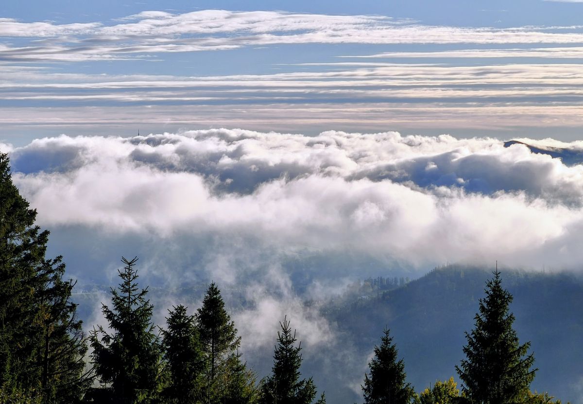 Panoramata se otevírají, jako když rozevřete náruč. Nebe připláclo na krajinu šedivou čepici. I když jsou mračna šedivá, nic to nemění na tom, že je tu nádherně.