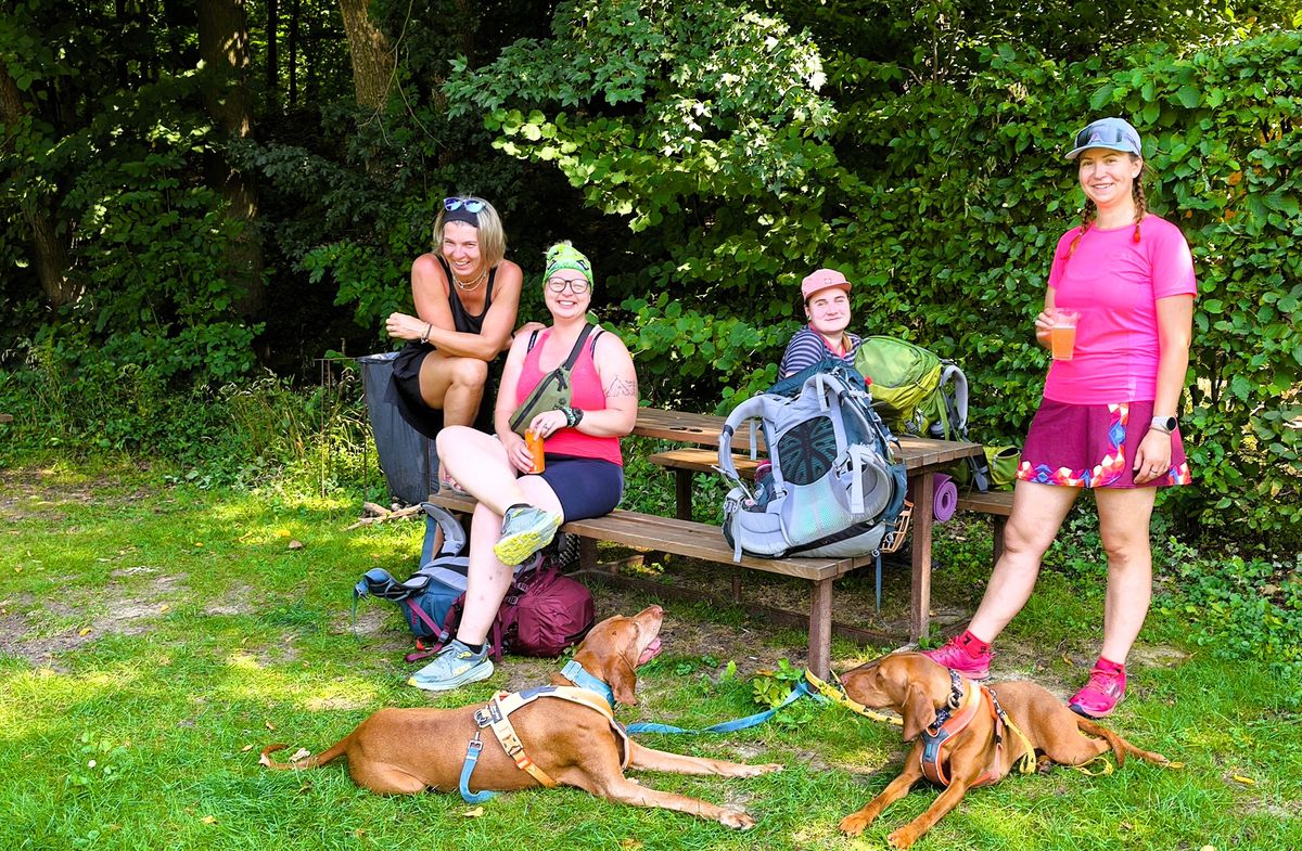 Usměvané kvarteto kamarádek a maďarští ohaři Lucky a Glow z Liberce