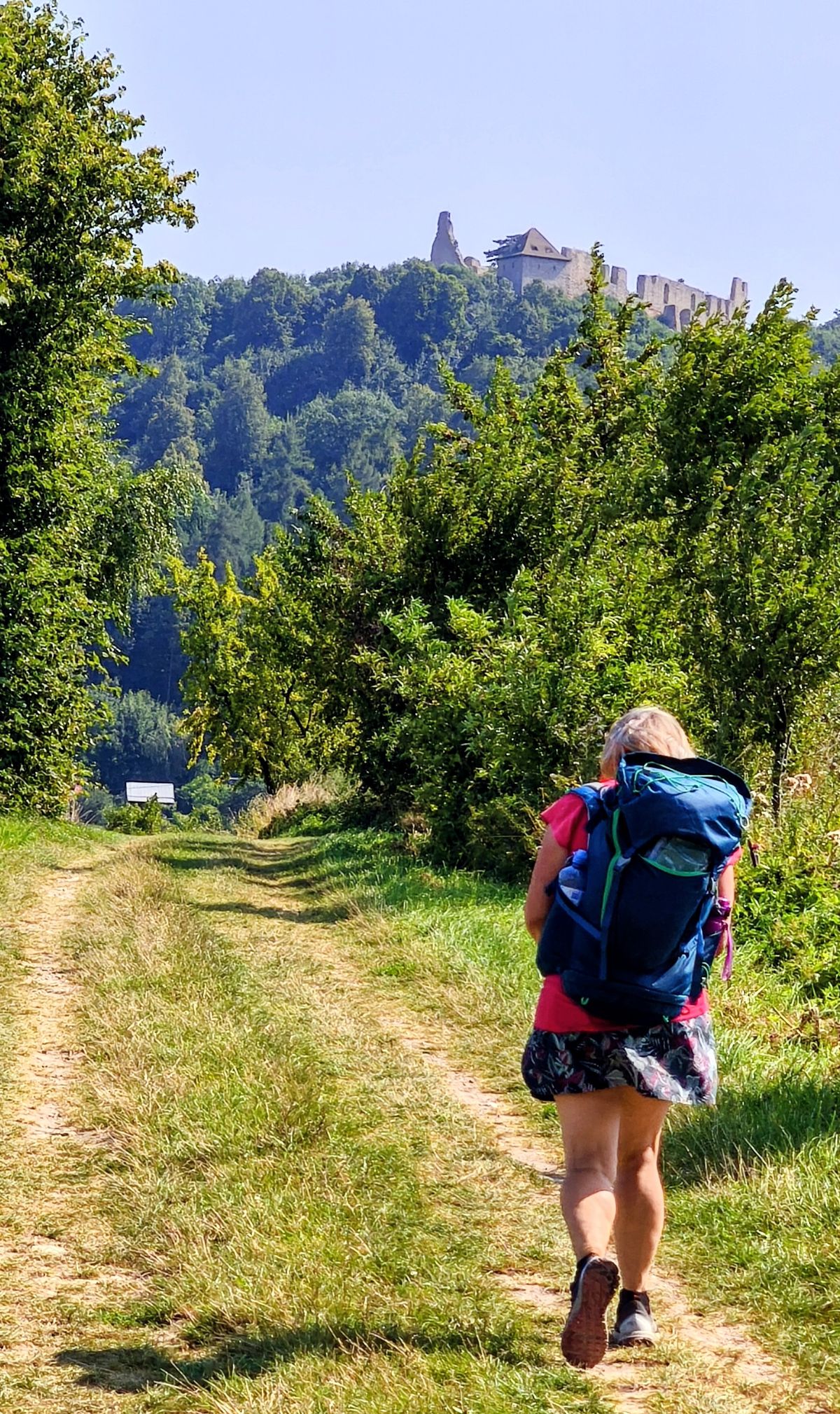 Od křížku poté vyrážíme na zříceninu. Takže až tam dolezu, budou tam zříceniny dvě. Nicméně se tu cítíme tak nějak zvláštně. Nesu si s sebou klid v duši, švestky a lipky i kukuřice s hnědými vlásky ho stále střeží. Něco mi to tu připomíná a je mi tu dobře. A jak si kousnu do švestky, jsem zase doma. Švestky u nás doma na zahradě a maminčin kynutý švestkový koláč s tvarohem. Na to se nezapomíná.