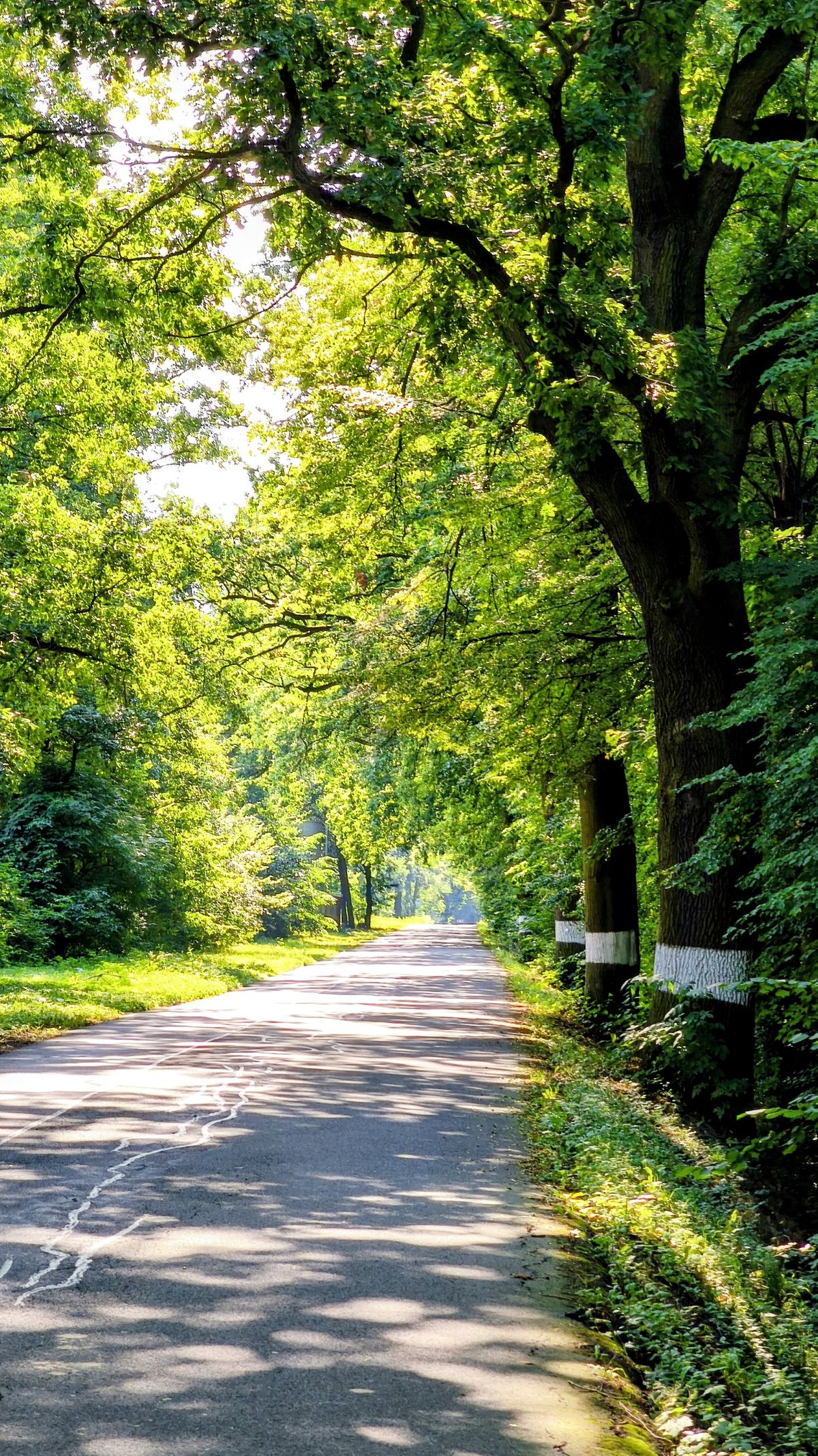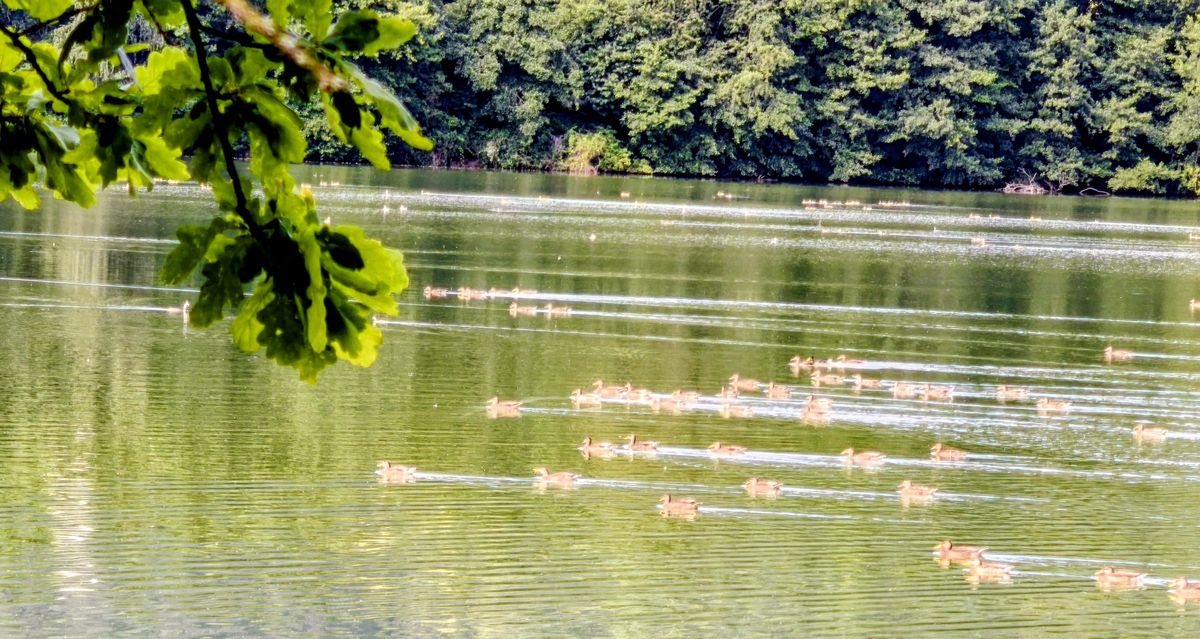 Pokračujeme po silnici a míjíme už třetí rybník. Na hladině pozorujeme kachny, ale to snad nejsou ani kachny! Jsou to přímo regaty! Závodí bok po boku, neskutečný pohled. Jen vlnky za sebou zanechávají a jako šipky míří vpřed. Frčí přes celý rybník. Z druhé strany už letí další kachny poblahopřát vítězi. Za vodní plochou se vypínají štíhlé topoly. Dýchlo na nás blahodárné vlhko. Sluníčko vykukuje zpoza stromů. Silnici lemují vzrostlé duby, úplní mackové.