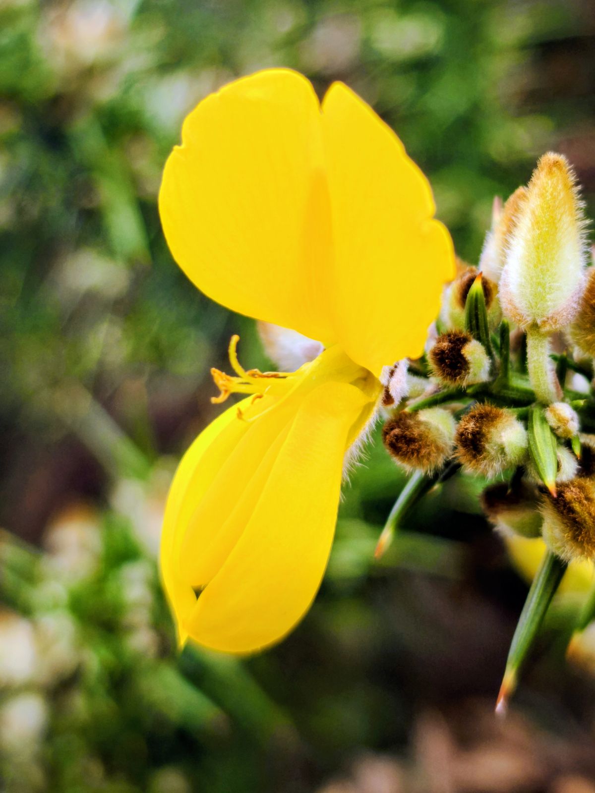 Ubíráme se po kameny vystlaném chodníčku a vítají nás první žluté motýlkovité květy hlodáše. Nenechte se zmást. Září sice jako sluníčko, ale stačí jeden neopatrný krok mimo cestu a máte nohy samý škrábanec.
