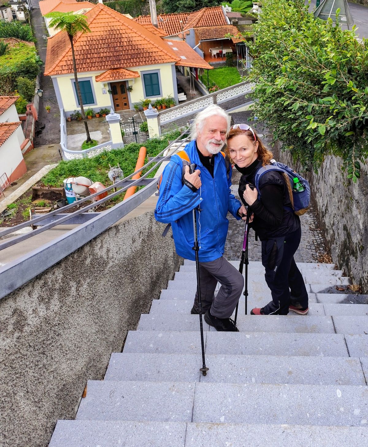 Přiletěli jsme 9. prosince a hned druhý den vyrazili pěšmo na jednu z tras. No, měli jsme co dělat. Netušili jsme, že Madeira je přírodní amfiteátr. Skrz São Vicente stále do kopce. Pár kilometrů před cílem jsme míjeli místního usměvavého pána, který okopával plody své práce na zahrádce a když viděl můj ufuněný obličej, oči se mu rozsvítily. Smál se: „Jdete nahoru?“