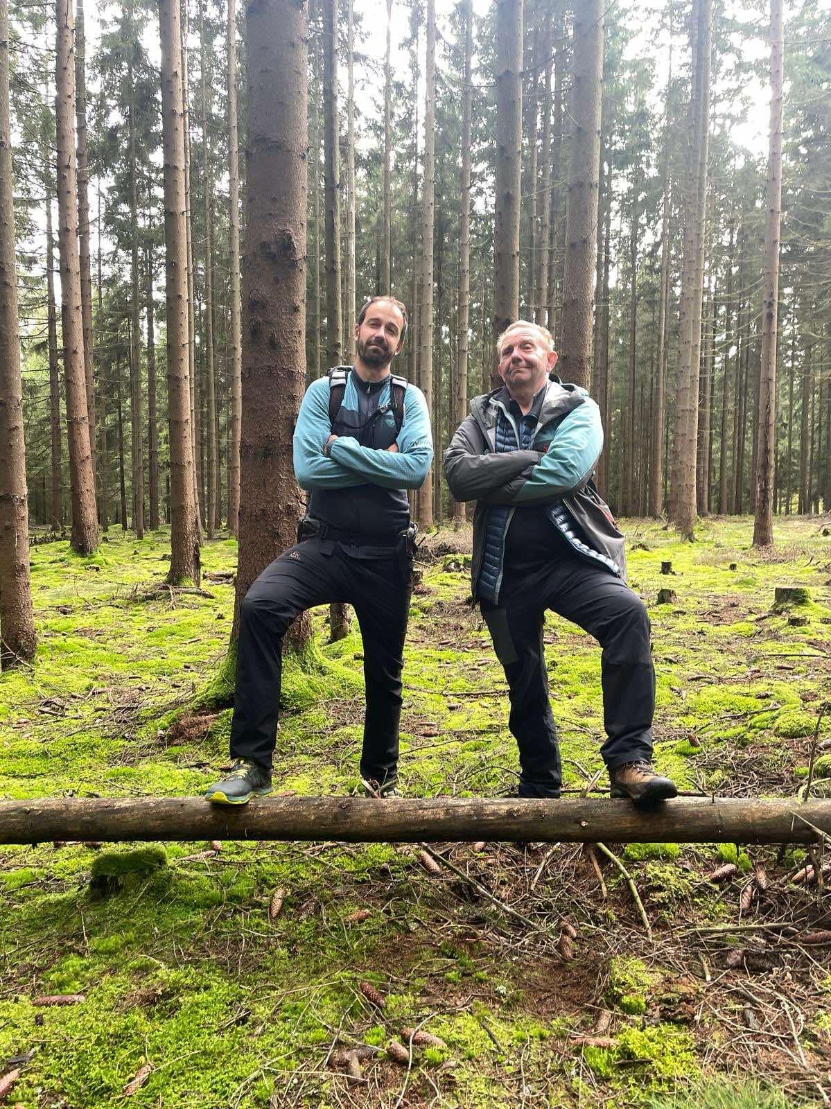 Opravovali cestu a potkali herce Miroslava Vladyku, který tu se štábem natáčel další pokračování Stezky Českem. Na fotografii se zakladatelem Stezky Českem, Martinem Úblem