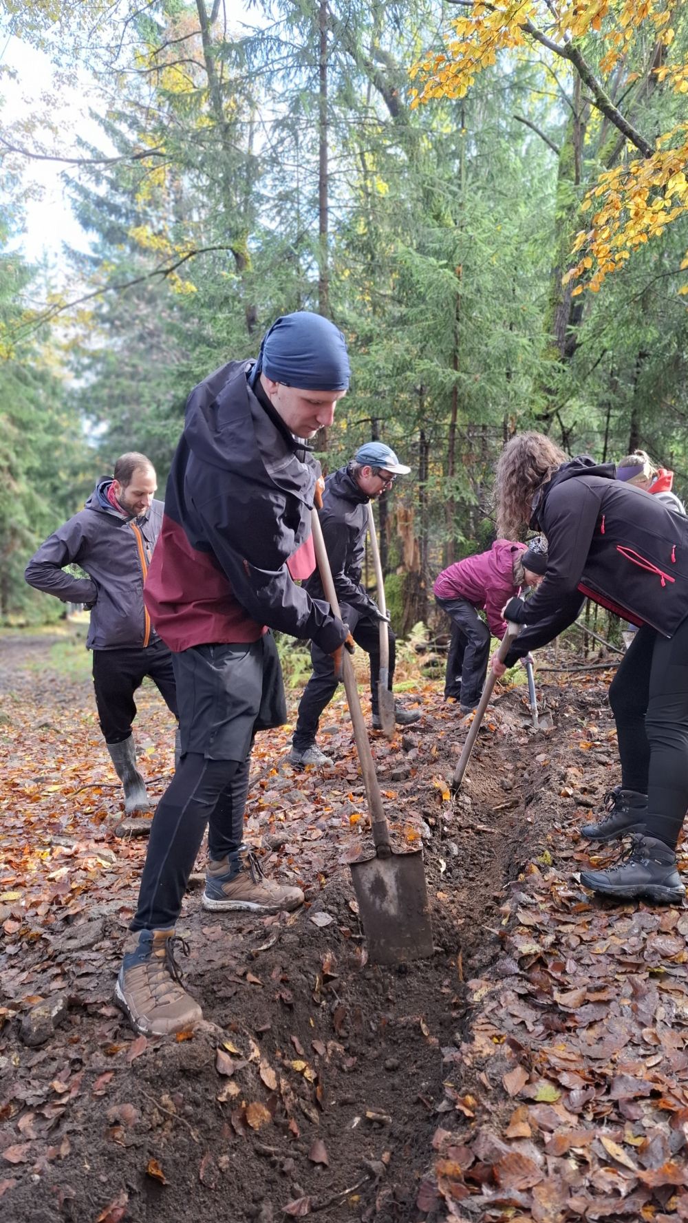 Dobrovolníci na Skalce kopou strouhy, aby stezky přežily jarní tání. Tady končí teorie a začíná poctivá dřina