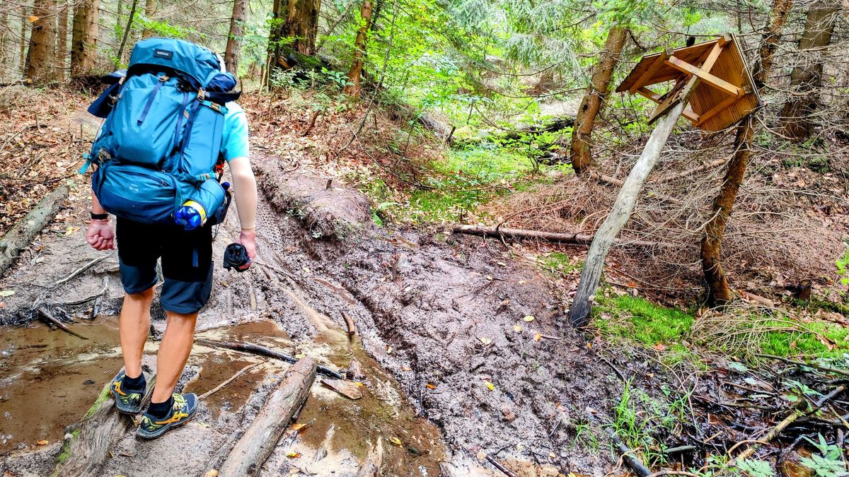 Z naší zkušenosti můžeme potvrdit, že je to skvělý tip, protože právě tudy jsme šli vloni Stezku Českem. A právě na této trase jsme celý den testovali, kolik bláta unesou naše boty.