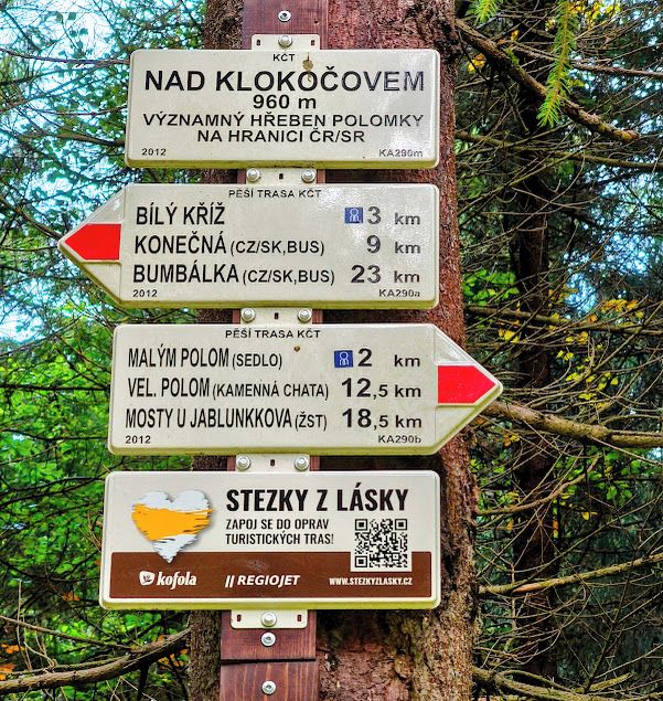 Při putování nás provázejí značky KČT i informační cedule Stezky z lásky