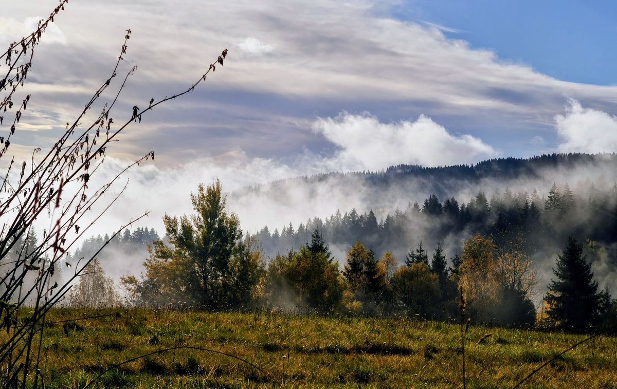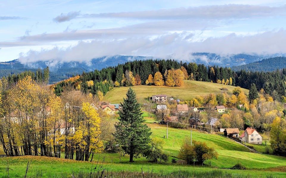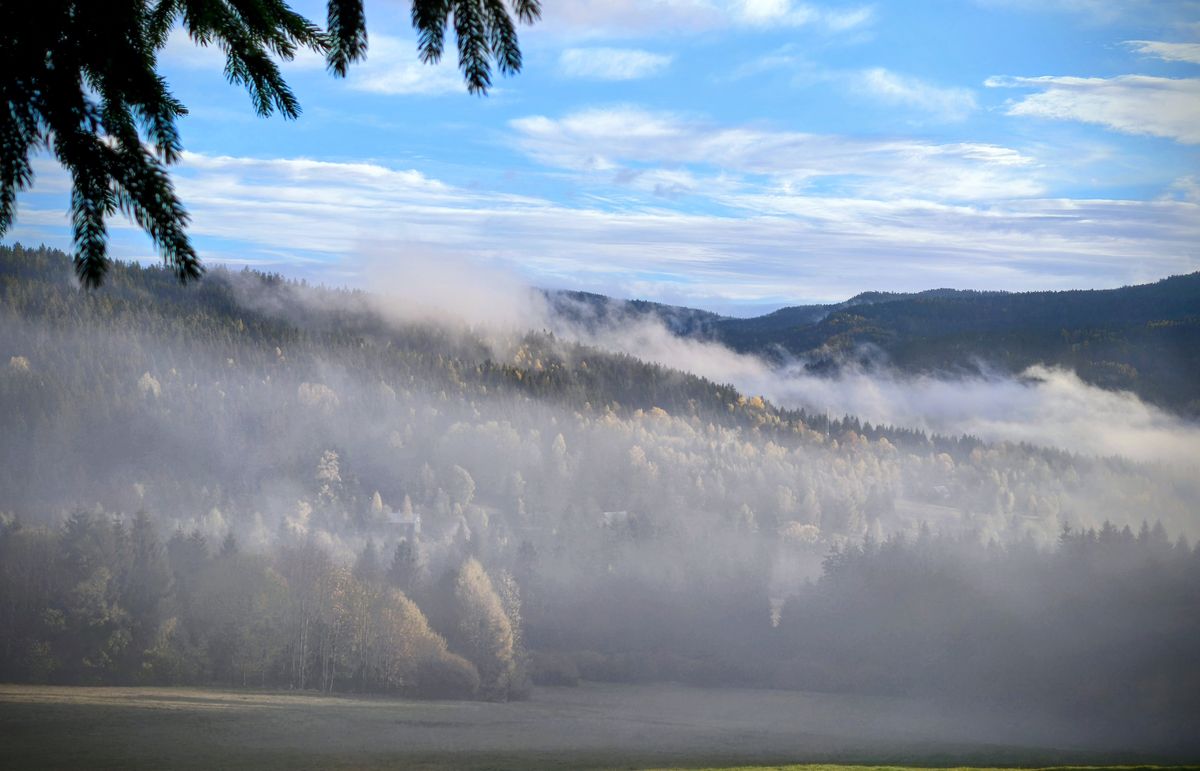Takovou krásu nemůžete koupit — můžete ji jen prožít. Z lesů se paří. Mlha pozvolna stoupá, jemně se přelévá přes střechy chaloupek, nebo ji zadržují vysoké smrky. Jako by si hrála na schovávanou.