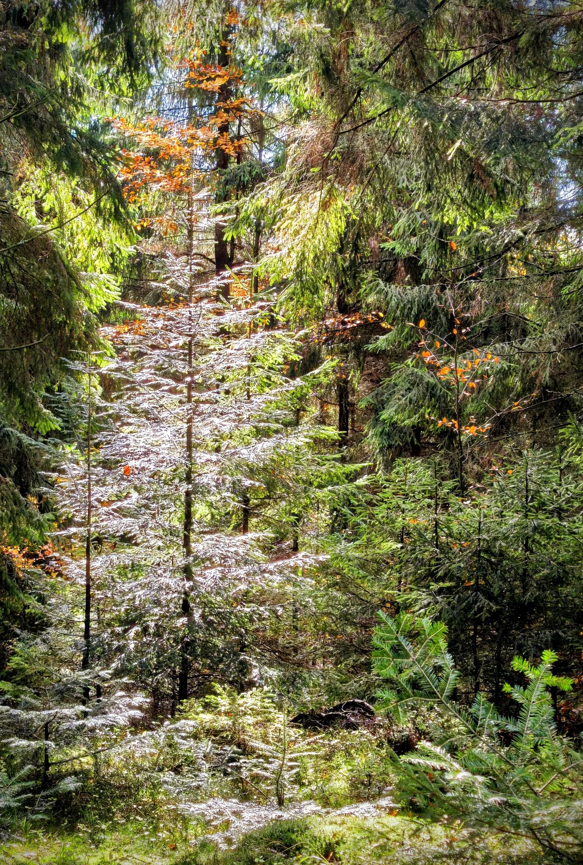 Z asfaltky jsme vkročili do lesa a už se odstrojujeme. Teplé věci šup do báglů, postačuje krátký rukáv a bunda. Stoupáme do kopce a zahříváme se. Vystoupali jsme nad Konečnou a s chutí listujeme v podzimním barevném katalogu Beskydy.