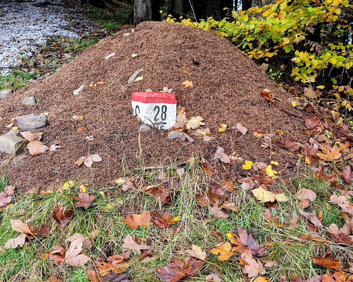 Jsme stále v objetí muchomůrek — hraničních mezníků. Jeden z nich se zjeví uprostřed mraveniště!