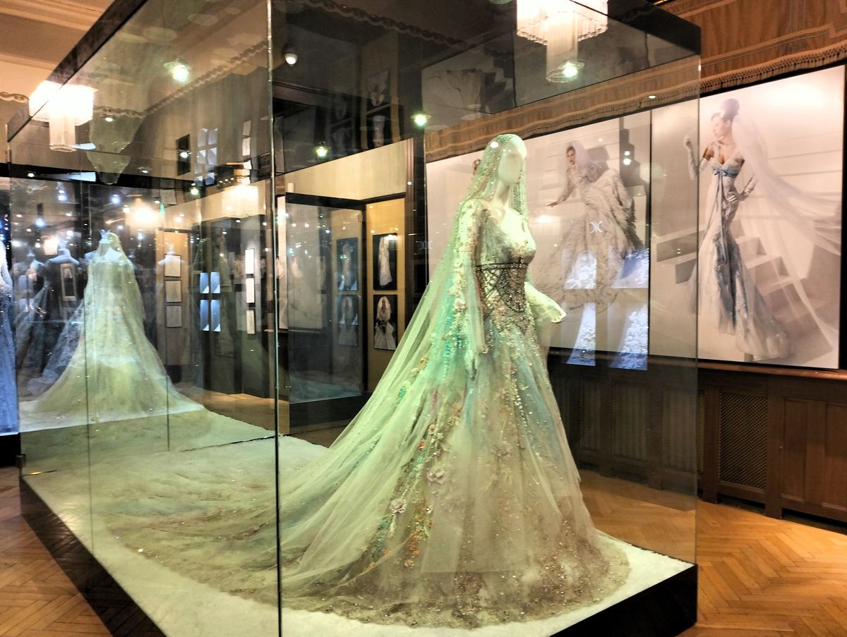 Na výstavě možná také nebudete vědět, kam se podívat dřív, jestli na fotografie šatů, jejich návrhy, rafinovaně propracované výšivky či na dramatické róby ušité ve stylu haute couture. Tvorba je seřazena chronologicky, od starších modelů, přes doplňky, až po nejnovější kolekce.